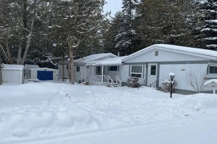 OPPORTUNITY KNOCKS!!! This economical 717 sq. ft. 2 bedroom modular home is located in a year around park located in west Wasaga, just a short walk to the beach to enjoy the panoramic sunsets over Georgian Bay. The home offers an open concept eat in kitchen/living room, 2 bedrooms, an extra room that could serve as a den or office, 3 piece bathroom, paved double driveway and 2 sheds. Monthly land lease fees of $610.00 include taxes, water and sewer charges and garbage pick up. Recent upgrades include – a new LG stove, new kitchen counter top, sink and fixtures, new hot water heater, bathroom renovation, two new light fixtures, new propane furnace, a vapor barrier installed in the crawl space and some interior and exterior painting, all completed in 2024.
