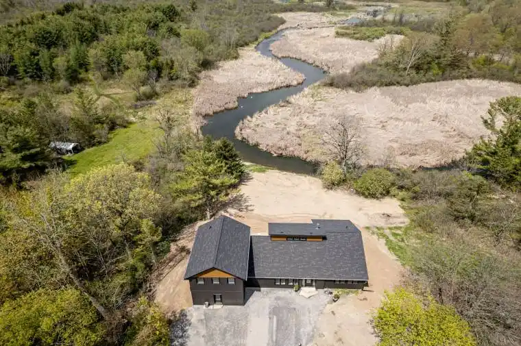 Discover this extraordinary 4-bedroom, 3-bathroom residence, beautifully renovated and set on over 30 acres of breathtaking land along Grass Creek. A brand new septic system installed in 2025 adds peace of mind to this already exceptional property. Step inside to soaring vaulted ceilings and an open concept layout filled with natural light. The stunning living room welcomes you with a cozy propane fireplace and rustic posts that seamlessly transition into a grand dining area-spacious enough to host gatherings of 10 or more, creating the perfect setting for lively conversations and unforgettable moments. The remarkable kitchen is a true culinary haven, featuring two toned cabinetry, gleaming white countertops, built in appliances, and an impressive pantry complete with double wall ovens and a wine fridge. This thoughtfully designed space inspires creativity and effortless entertaining. The main floor continues with a convenient laundry room, two generous bedrooms with vaulted ceilings, and a luxurious 4 piece bathroom showcasing a glass shower and deep soaker tub for ultimate relaxation. The second floor is dedicated entirely to the primary suite-a private retreat offering a bright bedroom, a spacious walk in closet, and an exquisite 4 piece ensuite with double sinks and a rejuvenating glass shower. The lower level reveals an inviting family room with a fireplace and a wall of windows framing enchanting views of the creek. Two additional spacious bedrooms, a 3 piece bathroom, and a dedicated gym space complete this versatile level, supporting a lifestyle of comfort and wellness. Step outside to an expansive deck overlooking the serene waterfront-perfect for entertaining, unwinding, or simply soaking in the beauty of nature. With Grass Creek Park just minutes away and downtown Kingston only a 10 minute drive, convenience and tranquility come together seamlessly. This property is a rare treasure-luxury, privacy, and natural beauty all in one extraordinary package.