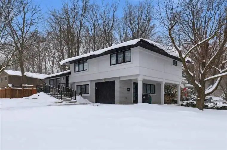 Mature and desirable Forest Hill location meets fully modernized side split on beautiful, wooded lot. 162 Greenbrook drive has undergone an addition and major renovation adding square footage to transform the primary bedroom to include an oversized walk in closet and 3 piece luxury ensuite. An elegant stucco exterior compliments the brick, enhances R value, and accents the newly replaced windows and overhanging soffits. Luxury vinyl plank and hardwood stairs span majority of the carpet free home with pot lighting and modern light fixtures distributed throughout. The elegant eat in kitchen, features floor to ceiling cabinets with a shaker door style, centre island with quartz countertops and stainless steel appliances. Entertainment space extends from this space to the oversized fully fenced yard through the sliding patio door. One level up leads to 3 bedrooms, a 5 piece main bathroom and 3 piece ensuite with heated floors, beautifully finished with designer tile, bath tub and shower niches, and glass enclosures. The ground level consists of the 4th bedroom, 3 piece bathroom, and leads to the beautifully finished epoxy floor garage. The basement level offers maximum versatility with a direct family room back door to outside access, fully finished laundry and office; giving you the ability to offer a potential separate living space. The updates are pristine and consistent throughout. Roof and windows new in 2023, gas stove, dryer, and BBQ hook up. This home checks lots of boxes, move in and enjoy!