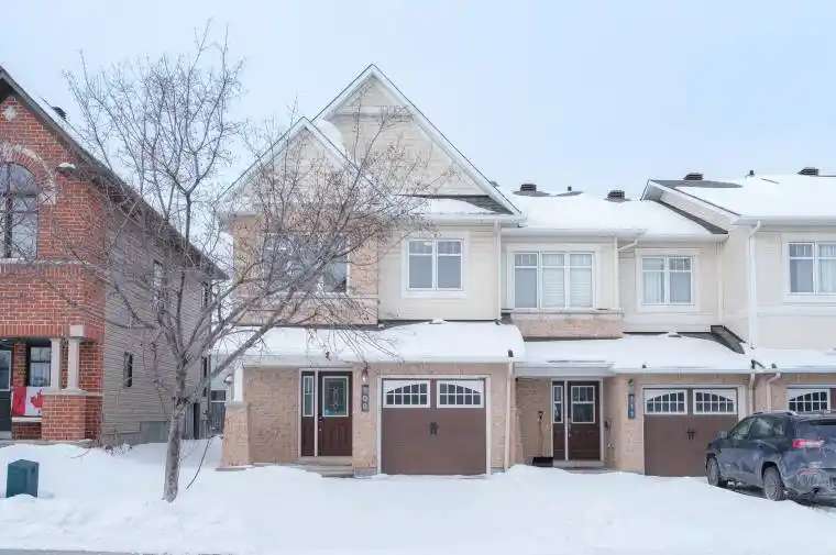 Beautiful END UNIT townhome in desirable Kanata Lakes! Available immediately. This bright and spacious 3Bed+2.5Bath home features an extended interlock driveway, hardwood floors, and many upgrades. The welcoming foyer with premium ceramic tiles leads to an open-concept main floor offering a formal dining area and a sun-filled great room with large windows. The gourmet kitchen boasts granite countertops, extended cabinets with ample storage, and a cozy breakfast area. A stunning curved hardwood staircase leads to the second level featuring a spacious primary bedroom with an upgraded ensuite and walk-in closet, along with two additional bedrooms and a full bath. The fully finished lower level includes a gas fireplace, laundry room, and extra living and storage space. Enjoy summer BBQs in the spacious backyard. Prime location-walking distance to parks, grocery stores, and bus stops, and just minutes to HWY 417, Tanger Outlets, Centrum, and Costco. Within the boundary of top-ranking schools: Earl of March HS, All Saints HS, and Kanata Highlands PS. Deposit: $5300.