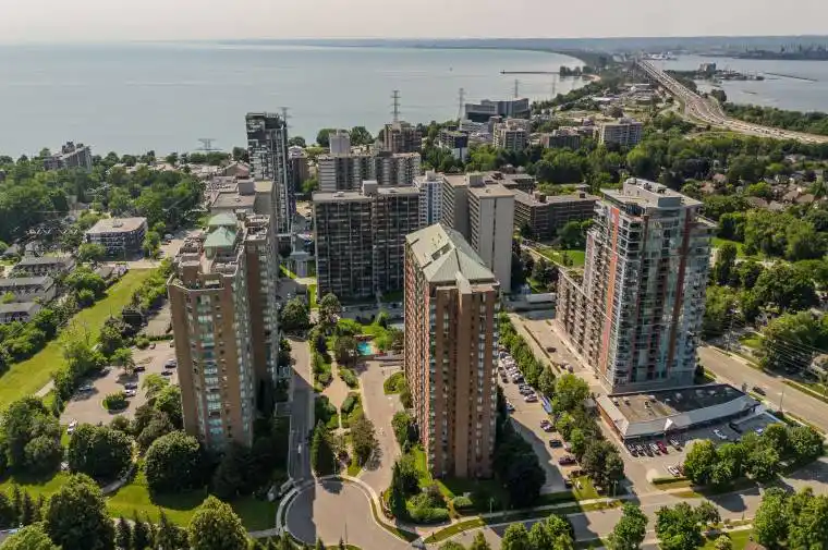 Welcome to an exceptional condo lifestyle in the prestigious Grand Regency Building in South Burlington-perfectly suited for first-time buyers and downsizers seeking comfort, convenience, and a vibrant, walkable location. Just minutes from the lake, waterfront trails, Spencer Smith Park, and the heart of downtown, this home offers a seamless blend of everyday ease and lifestyle appeal. Inside, a spacious and welcoming entryway opens to a bright, open-concept layout designed for effortless living and entertaining. Hardwood floors run throughout, anchoring the airy living space filled with natural light. The galley-style eat-in kitchen features granite countertops, stainless steel appliances, and ample cabinetry-ideal for casual meals, hosting friends, or simplifying daily routines. A dedicated dining area adds flexibility, while the den with a glass partition and large window is perfect for a home office, hobby space, or cozy reading nook. The primary bedroom is a relaxing retreat with a wall-to-wall window, dual closets, and a private 4-piece ensuite bath. A generous second bedroom also offers expansive windows and a large closet-ideal for guests or flexible living needs. A modern 3-piece main bath with walk-in tile shower, in-suite laundry, 2 underground parking spaces, and a storage locker add everyday practicality and peace of mind. Residents enjoy resort-style amenities including concierge service, outdoor pool, sauna, exercise room, racquetball court, squash court, outdoor tennis court, rooftop terrace, community BBQ, party room, guest suites, library, car wash, and ample visitor parking. Whether you’re stepping into homeownership or looking to downsize without compromise, this is low-maintenance living at its finest-where weekends are spent by the lake, strolling trails, and enjoying downtown cafés, all just outside your door.