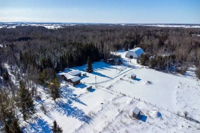 Welcome to this lovely 36.94-acre country property offering the perfect blend of privacy, functionality, and the ability to have all your hobbies and or workspace at your fingertips. Set in a beautiful, tranquil setting, this ranch-style bungalow is surrounded by rolling acreage, fenced paddocks with shelters, and outbuildings, ideal for small-scale farming, equestrian use, or those seeking space to live, work, play or unwind. The main residence features 3 bedrooms, 1.5 baths, a comfortable family room with a propane fireplace, kitchen, dining, and living areas designed for everyday living and entertaining. Step outside from the walk-out to your own backyard oasis, complete with an inground pool (requires a skimmer system), hot tub and custom-built sauna, all framed by peaceful country views. Main floor laundry adds everyday convenience. The fully finished basement expands the home’s versatility with 3 additional bedrooms, a 3-piece bath, laundry area, utility room, living room and a dry kitchen, plus a separate entrance ideal for extended family, guests, or potential in-law accommodations. Above the double-car garage, you’ll find even more living space with 3 bedrooms and a cozy nook, perfect for a home office, studio, or guest quarters. Outdoors, the property truly shines with a 60×120 coverall building, additional storage buildings, and paddocks offering endless possibilities for business, recreation or agricultural purposes.