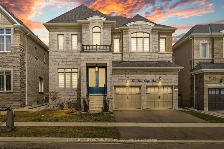 Welcome to 56 Arthur Griffin Crescent, a luxurious 2-storey home in Caledon East. This nearly 4,000 sq ft residence features:- 3-car tandem garage- 5 bedrooms with walk-in closets- 6 bathrooms, including a primary bath with quartz countertop & double sinks, heated floor, soaking tub, Full glass standing shower, a separate private drip area, and a makeup counter. Highlights include:- Custom chandeliers, 8-foot doors and 7-inch baseboards throughout the house. Main floor with 10-foot ceilings; 9-foot ceilings on the second floor & basement. 14 ft ceiling in the garage. Large kitchen with walk-in pantry, modern cabinetry, pot lights, servery, and built-in appliances- Main floor office with large window- Hardwood floors throughout- Dining room with mirrored glass wall- Family room with natural gas built-in fireplace, coffered ceiling and pot lights, a custom chandelier- Mudroom with double doors huge closet, and access to the garage and basement- a walk in storage closet on the main floor-Garage equipped with R/in EV charger and two garage openers- garage has a feature for potential above head storage –Separate laundry room on the second floor with linen closet and window- Pre-wired R/IN camera outlets. Ventilation system. This home has a front yard garden. Combining elegant design and a luxurious layout.