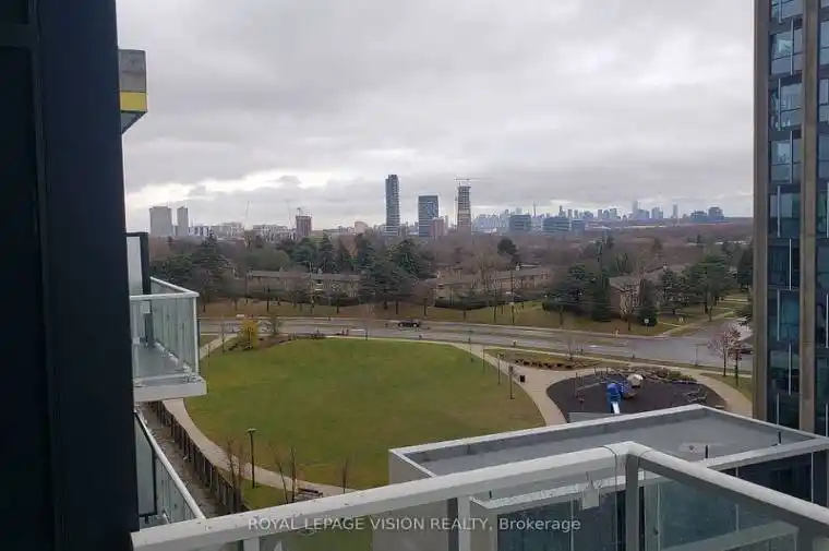 Southwest views, see the downtown Toronto skyline/CN Tower from the balcony. Vacant, One bedroom Clark Model 487 Square feet per builder floorplan plus a huge balcony, park and courtyard views, all wood / ceramic floors – no carpet, 2 walk-outs to huge balcony, one parking spot included.