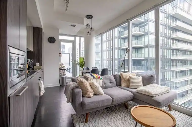 Welcome to King Blue Condos, where luxury meets the vibrant heart of downtown Toronto. This stunning north west 1 bedroom 1 bathroom residence is perched on a premium high-rise floor, offering abundant natural light through expansive windows. The sleek, modern kitchen is equipped with stainless steel appliances, ideal for both everyday living and entertaining. The contemporary open-concept living area provides a stylish and comfortable space to relax or host guests. Offered furnished with the option to be unfurnished. Situated in the heart of King West, enjoy unparalleled access to the King streetcar at your doorstep, top restaurants, cafés, grocery stores, and quick access to the Gardiner Expressway. Perfect for professionals, couples, or anyone seeking refined downtown living. Don’t miss this must-see opportunity.