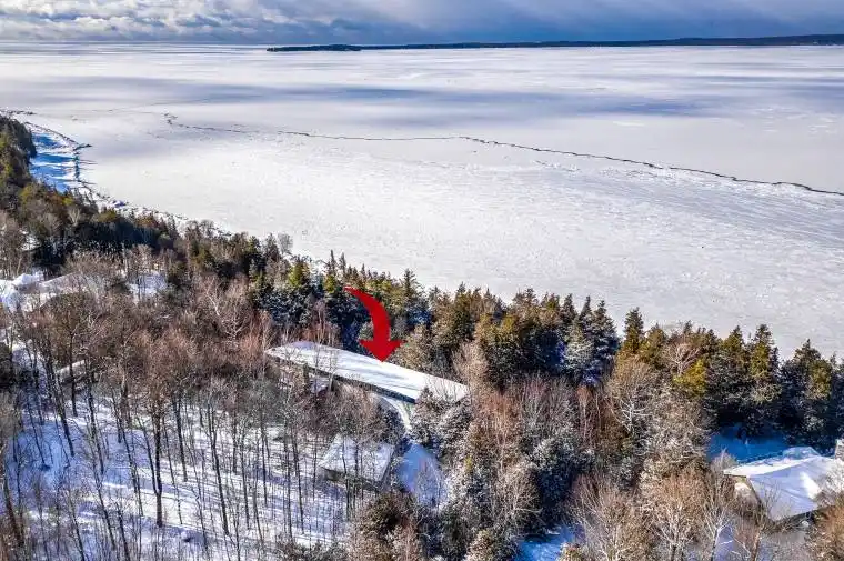 Nestled within the exclusive Cedar Ridge community in Tiny Township, this architect-designed retreat offers a rare opportunity to own a custom waterfront home. Designed by acclaimed architect Peter Bohlin – whose work includes Bill Gates summer residence – this one-of-a-kind Georgian Bay residence was honoured with the 2003 Residential Architect Design Award, recognizing its architectural excellence. Thoughtfully designed & expertly built in 2000, the home balances modern sophistication with a deep respect for its Georgian Bay surroundings. With over 5,800 sq ft of finished living space, including a 2,750 sq ft walkout lower level, the home features 3+2 bedrooms and 4 bathrooms, including a private principal suite. Floor-to-ceiling glass and rich post & beam construction with imported California pine create light-filled interiors that creates a seamless connection to the outdoors. At the heart of the home, a soaring stone wood-burning fireplace brings warmth & architectural impact to the open-concept living & dining areas. Sleek, modern & efficient, the kitchen reflects the homes quiet sophistication & easy flow for everyday living & entertainment. The fully finished walkout level includes additional bedrooms, abundant natural light, & a sauna – perfect for relaxation after a day on the water, whether paddling the shoreline, lounging by the dock, or simply enjoying the peaceful surroundings. Built with enduring quality, with in-floor radiant heating on both levels, a new boiler & hot water tank (2025), & propane generator for reliable 4 season comfort. The 2ac forested lot features 246ft of shoreline on Georgian Bay. A band of evergreens provides natural privacy, with the potential to open sightlines to Christian Island if desired. Just a 2hr drive from Toronto, this architectural treasure is nestled among other exceptional properties in one of Georgian Bays most prestigious communities offering privacy, serenity, & timeless design that will endure for generations.