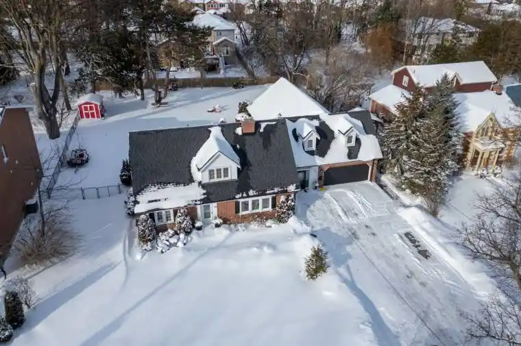 Set on almost, half an acre, in the heart of historic Bowmanville, this character-filled home offers space, charm, and exceptional versatility. A large driveway provides ample parking. The walkable location puts Bowmanville’s downtown shops, dining, and amenities nearby. Easy access to Hwy 401/407 for commuters. The home showcases beautiful period details including vintage door knobs, wide trim, crown moulding, and timeless craftsmanship throughout. The updated kitchen blends classic appeal with modern convenience, featuring tile flooring, pot lighting, quartz counters, built-in appliances, and abundant cabinetry. The spacious living room is warm and inviting with hardwood flooring, wide trim, crown moulding, a gas fireplace with an accent wall, French doors, and multiple windows that flood the space with natural light. A separate formal dining room with hardwood floors and built-in shelving is ideal for gatherings, anchored by a large picture window overlooking the expansive backyard. The main home offers five bedrooms, including two on the main floor, perfect for a home office or guest space, and three upstairs. The primary bedroom features his and hers closets and a walk-out to a balcony. Additional living space includes a basement rec room with tile flooring and pot lighting, an exercise room, 2-piece bath, and generous storage. Plus there is a loft area, ideal as a teen retreat or a bonus hangout. A large mudroom, attached two-car garage, and a thoughtfully designed layout adds everyday functionality. Completing this rare offering is a separate, SECOND living quarters with its own kitchen, living rm, two bedrooms, and two 4-piece baths, ideal for in-laws or income potential. A truly unique opportunity to live in one of Bowmanville’s most desirable historic settings.