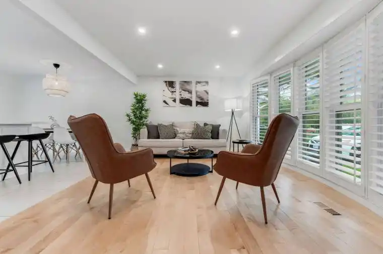 Welcome to this beautifully updated and fully furnished home offering a functional layout and modern finishes throughout. The bright main level features hardwood flooring, a sunlit living room, and a custom kitchen with ceiling-height cabinetry, quartz countertops, tile backsplash, skylight, and a large centre island. Sliding doors provide access to the backyard.The upper level includes three well-sized bedrooms and a 4-piece bathroom, with the primary bedroom offering double windows and dual closets. The lower level features a renovated 3-piece bathroom and a spacious recreation room, while the fourth level provides additional finished space with an office nook, storage, and laundry.The home is fully furnished, including furniture, kitchenware, plates, and cups, and is move-in ready for immediate occupancy. The private backyard includes an in-ground pool, hot tub, covered patio with heaters, and full fencing. Conveniently located close to schools, shopping, transit, and major roadways.